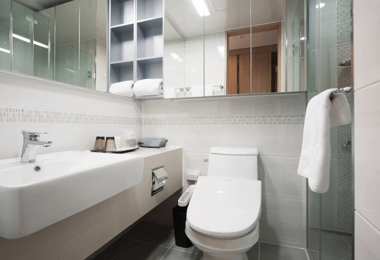 요즘 부산 호텔 트렌드도 친환경으로 변화하고 있다. 이에 발맞춰, 욕실에는 샴푸 겸 컨디셔너와 샤워젤이 디스펜서 형식으로 제공된다. 이외 칫솔과 치약, 면봉, 수건, 목욕 가운 등을 준비해준다.