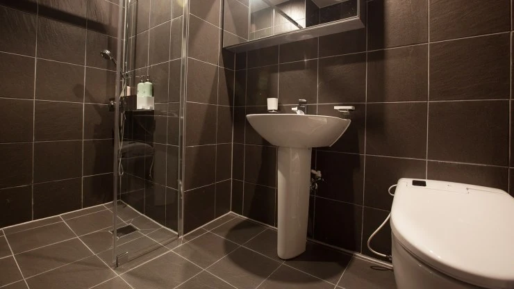욕실 어메니티는 샴푸, 린스, 바디워시가 구비되어 있다. 개인용품은 따로 챙겨가길 추천한다.