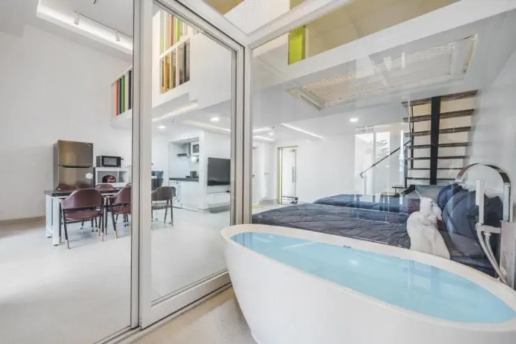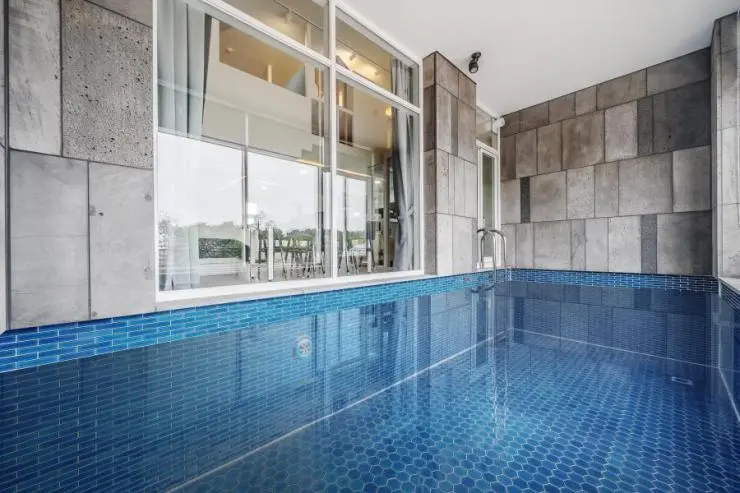 그 뿐만이 아니다! 개별 욕조와 커다란 개별 수영장도 있다. 실내라 사계절 내내 이용할 수 있어 더욱 좋다. 미온수 50,000원 추가 요금이 있으며, 사전 예약은 필수이다! 체크인은 15시부터 가능하며 체크아웃은 11시까지이다.