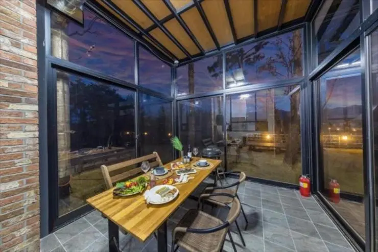 전용 바비큐장에서 맛있는 바비큐도 즐길 수 있다. (모닝 객실은 테라스 바비큐만 가능) 실내 바비큐장이 완비되어 있어 날씨와 상관없이 맛있는 식사가 가능하다. 22시까지 이용 가능하며, 숯과 그릴 요금은 별도로 20,000원이 부과된다.