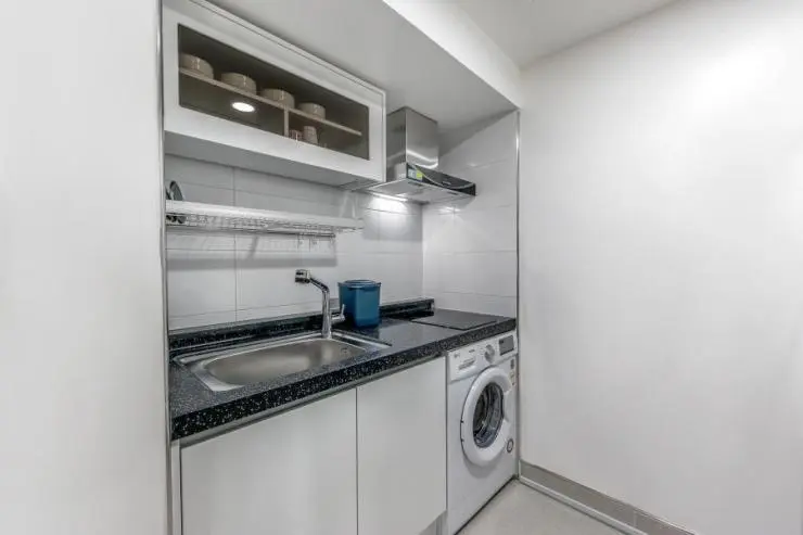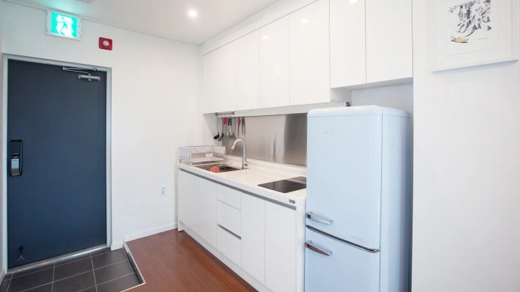 최대 5인까지 수용 가능한 객실은 매우 넉넉한 면적을 자랑한다. 주방에는 냉장고, 인덕션, 전기밥솥, 전자레인지, 취사도구가 완비되어 있다. 심지어 세탁기와 정수기까지 없는게 없다.
