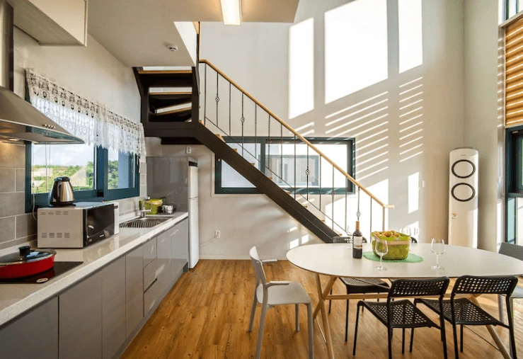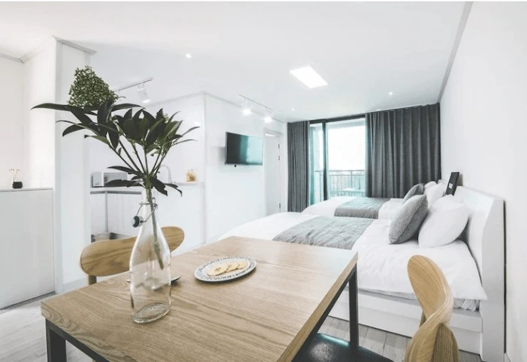 객실은 크게 커플룸과 패밀리룸으로 나뉜다. 화이트를 바탕으로 한 내부는 군더더기 없이 깔끔하다. 인테리어 조명을 적재적소에 활용해 로맨틱한 분위기를 만들어준다. 객실에는 침실과 욕실은 물론, 주방 공간도 마련해 놨다. 아일랜드 홈바와 네스프레소 캡슐 커피 머신은 감각적인 힐링 공간이 되어 준다.