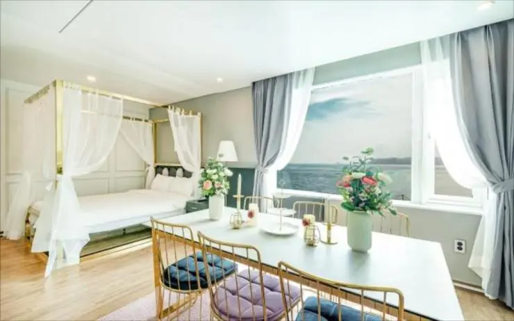 객실은 아기자기하고 예쁘게 꾸며져 있다. 기념일이나 파티를 하기에도 손색이 없을 정도이다. 커플, 우정 여행에 딱이다! 루프탑 라운지는 미포 포구와 해운대 광안대교, 달맞이 고개까지 환상적인 뷰가 펼쳐진다 아름다운 뷰도 즐기고 잊지못할 인증샷도 남겨오자.