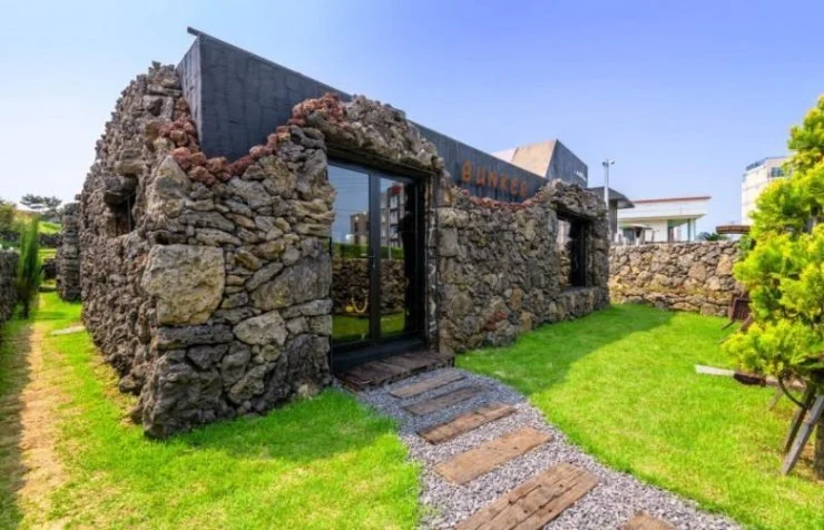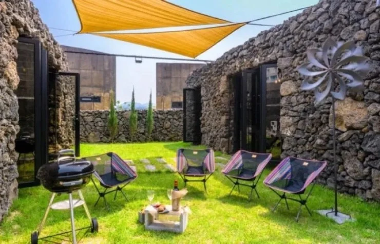 함덕해수욕장 인근에 있는 제주도 감성숙소 벙커펜션은 제주 전통 가옥과 트렌디한 인더스트리얼리즘 인테리어가 조화로운 곳이다. 특히 150평 넓은 부지와 현무암 돌담으로 이루어져 제대로 감성 여행할 수 있다.