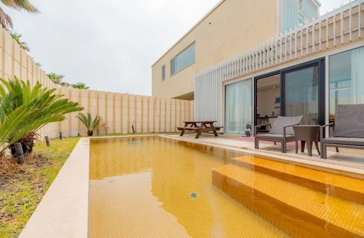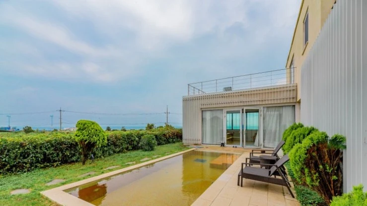 앞서 소개해 드렸듯 나미브 풀빌라는 모든 객실에 프라이빗 풀빌라가 준비되어 있다. 야외 풀빌라로 탁 트인 제주도 전경을 감상하며 풀빌라를 즐길 수 있다. 단 미온수 요청 시에는 추가금이 발생하는데, 6월~9월 사이에는 10만 원, 10월~5월 사이에는 15만 원이다. 물론 냉수는 무료!