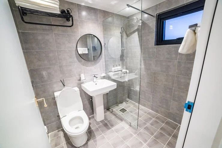 욕실에는 샤워부스가 설치되어 있고, 샴푸, 린스, 바디워시, 비누, 수건, 드라이기 등 필수적인 어메니티가 준비되어 있다. 칫솔과 치약은 제공되지 않으니 이 두 가지 정도만 개별적으로 가져가면 된다.