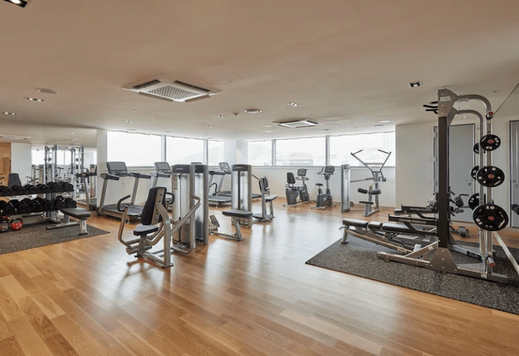클럽하우스 1층에는 로비와 프런트 데스크, 수영장이 위치했다. 인근 관광 정보 리플렛도 비치해놨다. 입·퇴실 전후로 살펴보자. 같은 건물에는 찜질방과 피트니스 센터, 라커룸을 갖췄다.