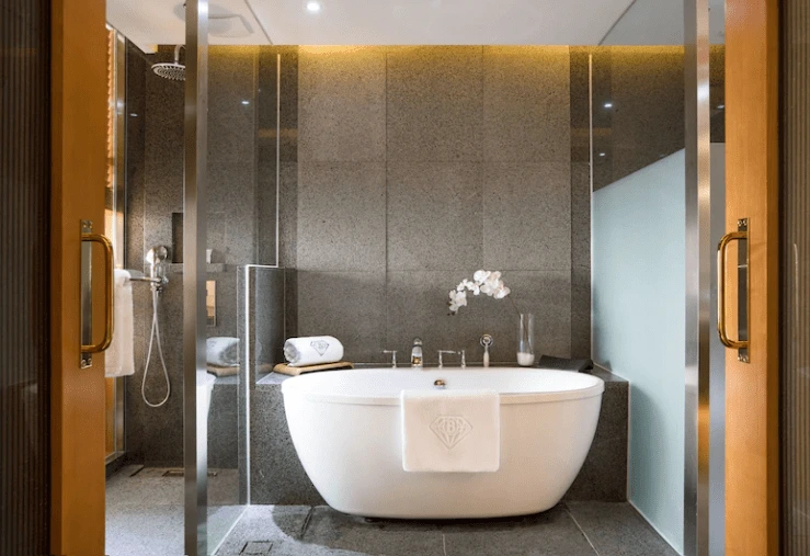 어메니티로 아베다 욕실용품이 제공된다. 샴푸와 컨디셔너, 바디워시, 바디로션이 포함돼 있다. 이외 덴탈 키트와 코튼 세트, 빗, 헤어드라이어, 3종 타올, 목욕 가운, 헤어드라이어를 비치해 놨다.
