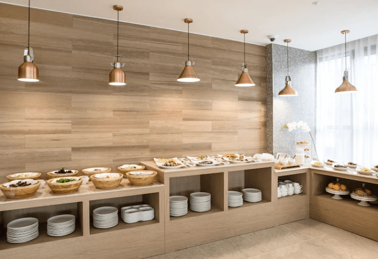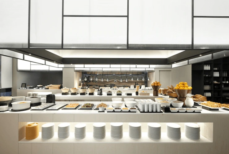 조식은 2층 레스토랑 카페에서 주중 오전 6시 30분부터 9시 30분까지 운영된다. 주말과 공휴일에는 30분씩 늦게 문을 열고, 닫는다. 인터내셔널 뷔페로 제공된다. 규모가 넓어서 서두를 필요가 없다.