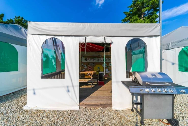 포항 유힐캠핑파크 각 객실 앞에 자리한 전용 테이블에서 바비큐 파티를 즐겨보자. 카라반에는 가스 그릴, 글램핑에는 숯과 그릴이 제공된다. 객실 주방에는 취사 및 식기류를 완비했다.