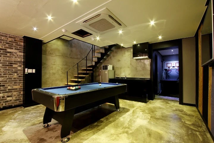 복층은 침실, 1층은 놀이공간으로 분리되어 있다. 1층에는 포켓볼, 고사양 PC, 농구게임기, 노래방 등 다양한 즐길 거리가 있다.
