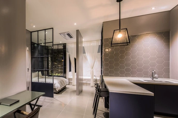 테이블과 소파도 넉넉한 규모로 갖춰져 있다. 빨간 벽돌 벽이 매력적인 스파 공간은 사진 찍기에도 좋다. 물론 스파 즐기기에도 훌륭하다.