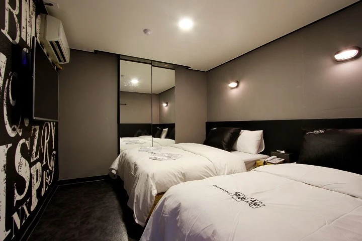중리 페이지 호텔은 스트레스가 싹 날아가는 대전 파티룸 호텔이다. 파티룸은 복층 구조로 넉넉한 트윈베드가 준비되어 있다. 최대 9명까지 숙박이 가능하다.