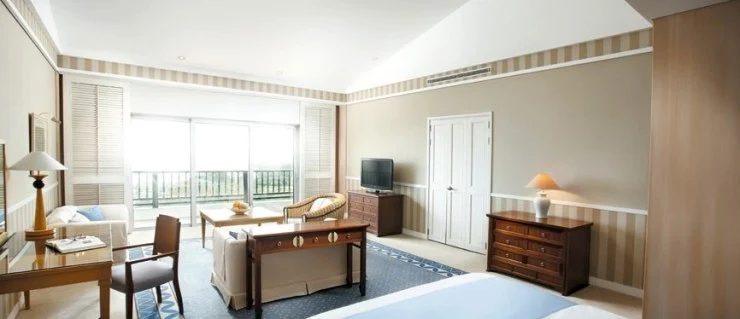 제주 신라호텔의 퍼시픽 디럭스 객실은 화이트와 블루톤을 적절하게 사용해 해외 리조트의 시원한 분위기를 느낄 수 있는 세련된 스튜디오 스타일의 스위트급 객실이다. 침실과 욕실 어디에서나 제주도 바다를 감상할 수 있어 로맨틱한 신혼여행 숙소로 사랑받는 객실이다.