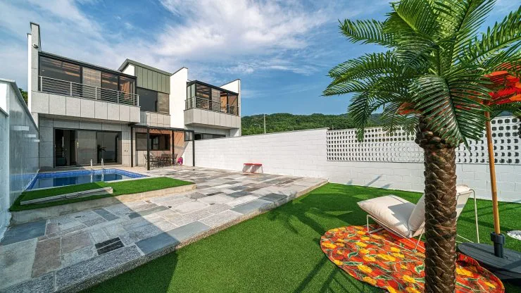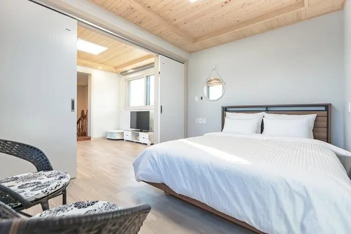 빌라 B는 최대 8인까지 투숙이 가능한 35평형 객실이다. 침실이 총 3개로 대가족도 OK. 개별 마당도 무려 70평이나 되어 아이들이 마음껏 뛰어놀 수 있다!