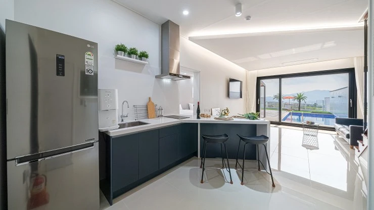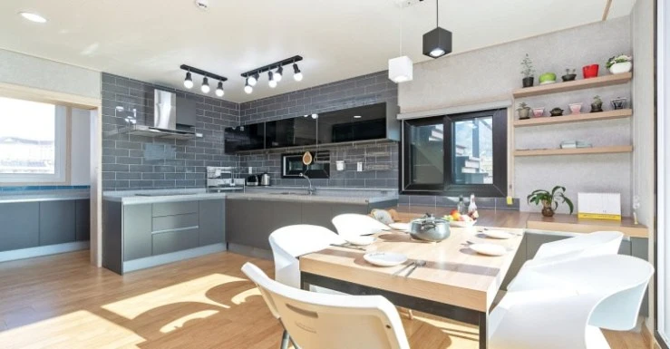 객실 내 취사가 가능하며 전기밥솥, 주방용품, 냉온 정수기까지 모두 갖춰져 있다. 최대 8인까지 숙박이 가능해 두 가족이 가도 좋다.