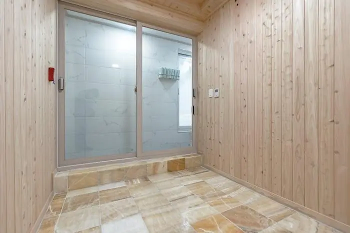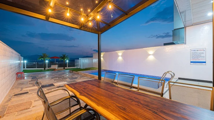 경주 독채풀빌라 답게 전 객실 개별 수영장과 찜질방도 있다. 따뜻한 천연 온천수가 무료로 제공되며 시간제한 없이 즐길 수 있다! 따끈따끈한 편백 찜질방도 있어 부모님과 함께 가도 너무 좋다. 체크인은 15시부터 가능하며 체크아웃은 11시까지이다.