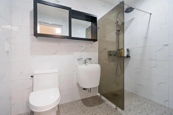 욕실은 1층에 1개, 2층에 2개 총 3개가 있다. 인원이 많으면 화장실이 제일 문젠데 여긴 걱정 없다. 어메니티는 샴푸, 린스, 바디워시가 갖춰져 있어요 칫솔과 치약만 챙겨가자.