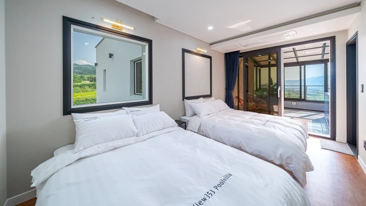 더보문 풀빌라는 겨울에 가기 좋은 숙소이다. 객실 타입은 원룸형과 독채 복층형 객실을 보유하고 있다. 깔끔하고 모던한 인테리어로 누구나 좋아할 스타일이다.