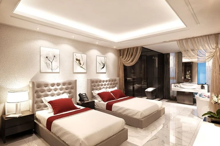화이트톤의 깔끔한 외관은 근처 서우봉 해변과 그림같이 어울린다. 주변에는 해수욕장과 카페, 산책로가 갖춰져 있다. 인근 여행하기에 좋다. 간접등을 활용한 객실은 실제 공간 보다 훨씬 여유롭게 보인다.