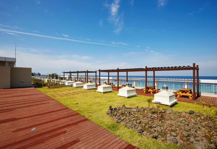 1층에는 로비와 프런트 데스크, 비즈니스 센터가 자리했다. 지하 1층은 주차장과 남,여 사우나로 운영 중이다. 이외 부대시설로는 루프탑 하늘정원과 인피니티 풀을 갖췄다. 선셋 맛집으로 유명하다.