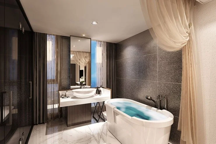 모든 객실에 욕조가 설치돼 있다. 하루의 피로는 반신욕으로 풀어보자. 욕실 어메니티로는 샴푸와 컨디셔너, 바디로션, 바디워시, 샤워캡, 머리끈, 슬리퍼, 가운, 헤어드라이어, 수건이 제공된다.