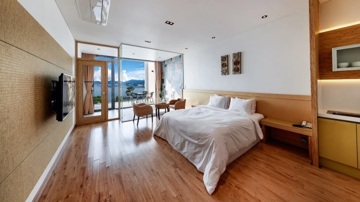 지리적 특성을 살려 남해 당항포만의 이국적인 풍경과 자연을 모티브로 설계됐다. 화이트톤 외관은 시시각각 변하는 하늘 빛깔을 고스란히 담아낸다. 통창과 테라스를 내어 주변 경관을 즐기기 좋다.