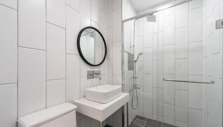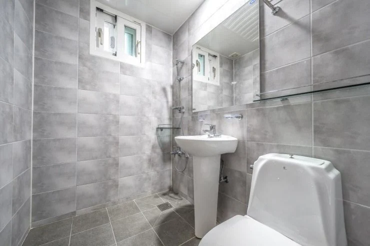 욕실은 화이트 톤으로 깔끔 & 모던 그 자체이다! 샤워부스가 설치되어 있고, 샴푸, 린스, 바디워시, 바디로션, 치약, 칫솔, 수건, 헤어드라이어 등 웬만한 어메니티는 제공된다. 클렌징폼, 면도기 정도만 챙겨와도 된다.