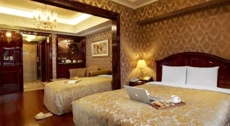 유럽 궁전을 연상케 하는 고급스러운 인테리어가 돋보이는 강남 레지던스 아르누보씨티의 사파이어 패밀리 더블 객실을 소개한다. 객실은 더블 침대와 싱글 침대로 총 2개의 침대가 준비되거나 싱글 침대 3개가 준비된다. 3인에서 4인까지도 충분히 머물 수 있다.
