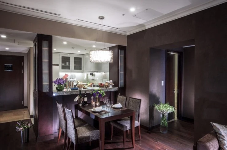 서울 도심이 한눈에 들어오는 강남 레지던스 오크우드 프리미어 코엑스의 2 베드 스튜디오 아파트먼트는 2개의 침실과 널찍한 거실 겸 다이닝 공간이 준비되어 친구들과 함께 파티룸으로 제격인 곳이다.