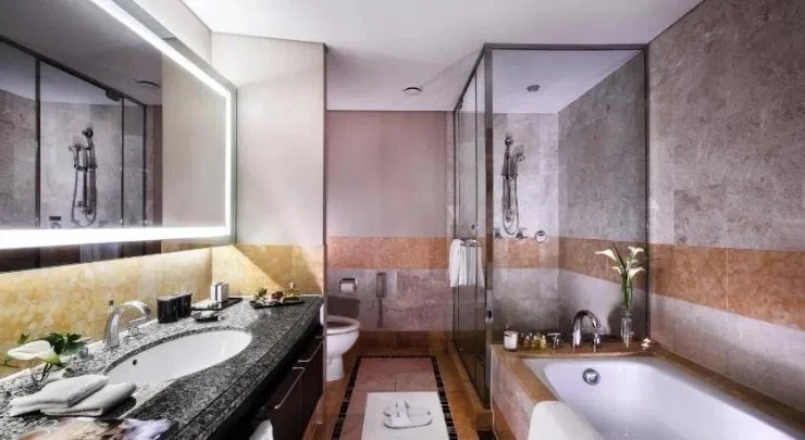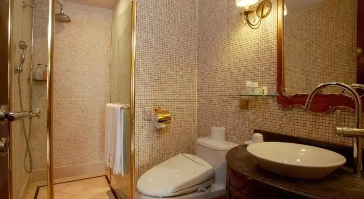 거울 셀카를 저절로 찍고 싶어 지는 블링블링한 욕실에는 샴푸, 샤워젤, 바디로션, 헤어드라이어, 샤워캡, 면봉, 빗 등 어메니티로 준비돼 있다. 치약과 칫솔만 개별적으로 챙겨 오거나 객실 유료 미니바에서 구매해도 된다.