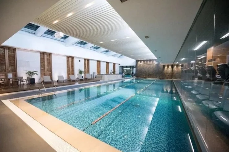 로비는 5층이에요. 체크인은 오후 15:00부터, 체크아웃은 오전 11:00까지이다. 부대시설은 실내 수영장, 체련장, 골프장, 사우나 등이 준비되어 있다. 단 코로나 19 확산 방지와 사회적 거리두기 방침에 따라 해당 시설은 운영이 중단된 상태이다.