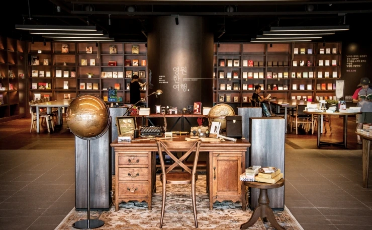 지하 2층에 자리한 이터널 저니는 전체 500여 평 규모로, 한 사람의 서재를 그대로 옮겨 놓은 듯하다. 음악과 차를 함께 즐길 수 있는 카페와 키즈 존을 다채롭게 갖췄다. 어른과 아이 모두 행복한 공간이다.