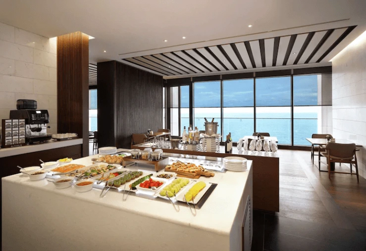 모든 기장 힐튼호텔 이그제큐티브 룸 투숙객은 전용 라운지를 이용할 수 있다. 조식과 애프터눈 티, 이브닝 칵테일을 마음껏 즐겨보자. 라운지는 오전 6시 30분부터 밤 9시까지 운영된다.