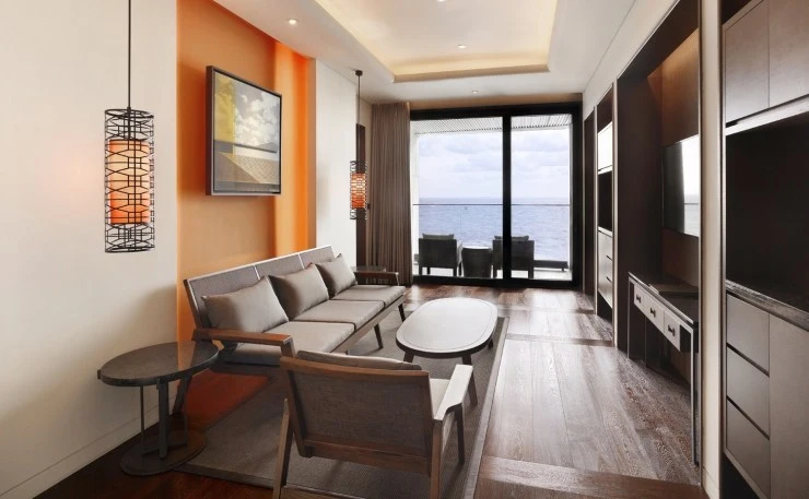 호캉스 목적으로 기장 힐튼호텔 찾은 여행자에게 인기가 높은 객실이다. 발코니를 포함해 21평 규모로 거실과 침실이 구분돼 있다. TV와 네스프레소 커피 머신, 미니바, 전자 금고 등을 갖췄다.