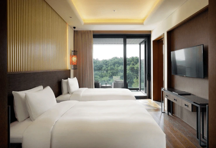 전체 기장 힐튼호텔 객실은 디럭스와 프리미엄, 이그제큐티브, 스위트로 나뉜다. 전망은 오션뷰와 마운틴뷰로 구분된다. 기본 룸에도 프라이빗 발코니를 갖춰놨다. 덕분에 뷰캉스 숙소로 안성맞춤이다.