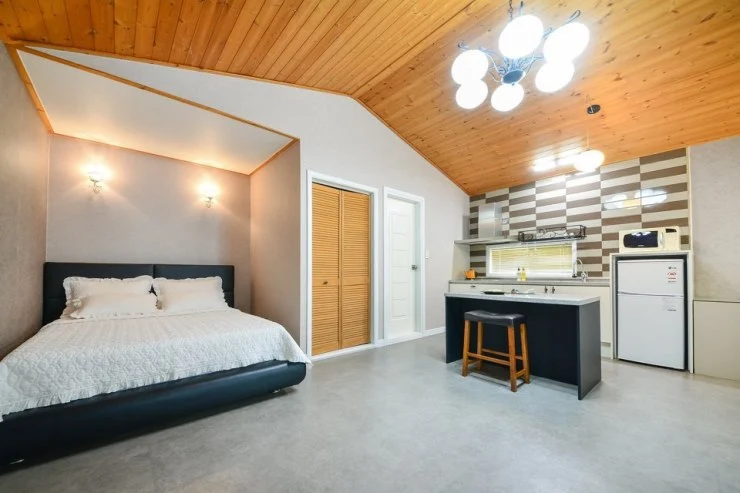 가장 먼저 소개할 ‘노랑 펜션’은 개별 테라스와 침실에서 서해의 아름다운 낙조를 감상할 수 있어서 커플 여행 숙소로 인기가 높은 강화도 펜션 중 하나이다. 특히 월풀욕조를 스킵플로어 형태로 설계하여 침실과 주방을 나누어 실용적이면서 감각적인 인테리어가 이색적이다.