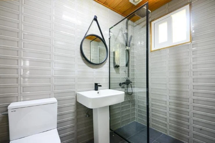 욕실에는 샤워부스가 준비되어 있다. 어메니티로는 샴푸, 바디샴푸, 비누, 치약, 칫솔, 바디 스펀지, 수건, 드라이기 등 아주 꼼꼼하게 제공되니 몸만 가볍게 와도 전혀 문제없다.