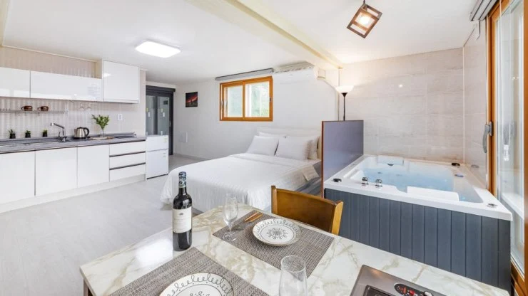 각 객실에는 스파 욕조와 개별 바비큐 테이블까지 준비되어 있으니 굳이 나갈 필요 없이 객실 안에서 모든 걸 해결할 수 있는 진정한 비대면 숙소이다!