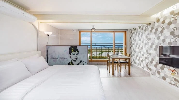 전 객실 개별 테라스가 준비되어 있다. 탁 트인 바다가 보이는 개별 테라스에서 프라이빗한 바비큐 파티를 즐길 수 있다! 바비큐는 2인 기준 20,000원만 현장 결제해 주시면 숯과 그릴이 제공된다.