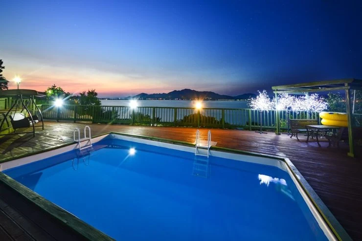 부대시설로는 여름 시즌에만 운영되는 야외 수영장과 야외 바비큐장을 갖췄다. 2인 기준 숯과 그릴 대여 비용은 2만 원이다
