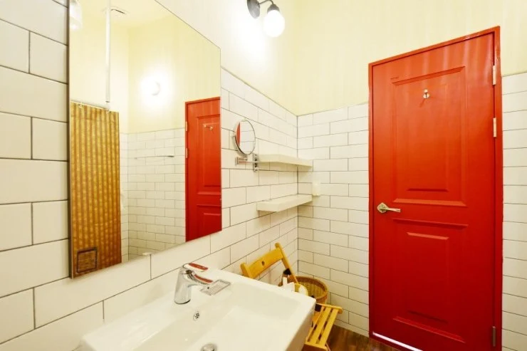 양평 호텔도반 L동은 레드 컨셉으로 꾸며진 객실인 만큼 곳곳에 레드 포인트가 눈에 띈다. 화이트와 우드가 조화로운 욕실에 레드 컬러의 문이 확실한 포인트가 된다. 어메니티도 7성급 호텔 못지않게 최고급으로 제공된다. 샴푸, 린스, 바디워시, 비누, 수건, 헤어드라이어 등이 구비되어 있으며 칫솔과 치약 등은 개별적으로 챙겨오면 된다.