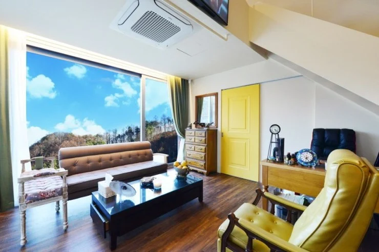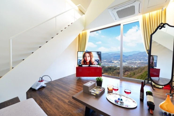 양평 호텔 도반 L동의 객실은 침실에서 동양의 마테호른이라 불리는 백운봉을 볼 수 있어 힐링 전망을 자랑하는 곳으로 한 번에 2인에서 최대 4인까지 숙박 가능하다.
