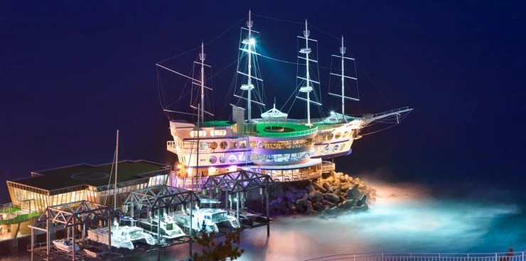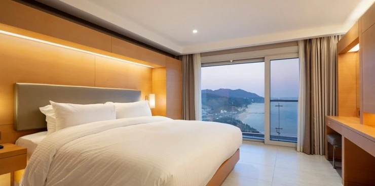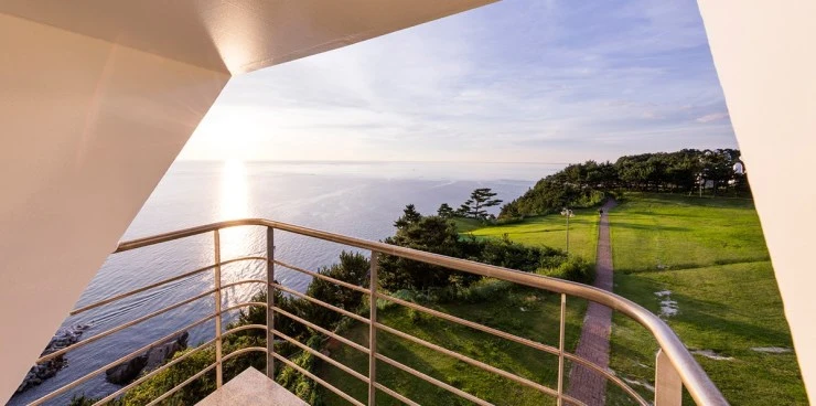 전 세계 어디서도 찾아볼 수 없는 육상 크루즈 리조트로, 독보적인 외관을 자랑한다. 무엇보다 정동진 천혜의 해안 절경과 잘 어울린다. 객실은 탁 트인 바다 전망에 집중할 수 있도록 심플하고 모던하게 꾸며졌다.