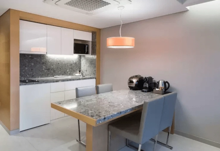 콘도형의 장점은 역시 주방이다. 싱크대부터 전자레인지, 냉장고, 인덕션 레인지, 식탁까지 완벽하다. 취사 및 식기류도 고루 갖췄다. 이른 아침 일출과 함께 커피 한 잔은 물론, 늦은 밤 야식 즐기기에도 좋다.