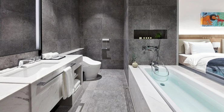 욕실에는 욕조가 설치돼 있다. 반신욕을 즐겨보자! 어메니티로는 C.O Bigelow의 샴푸와 컨디셔너, 바디워시, 바디로션, 비누가 제공된다. 이외 덴탈 세트와 빗, 면봉, 화장솜, 수건, 헤어드라이어를 완비했다.