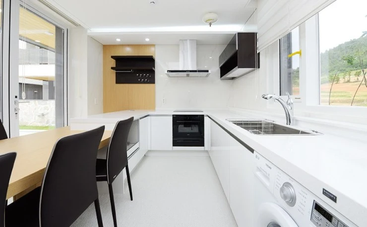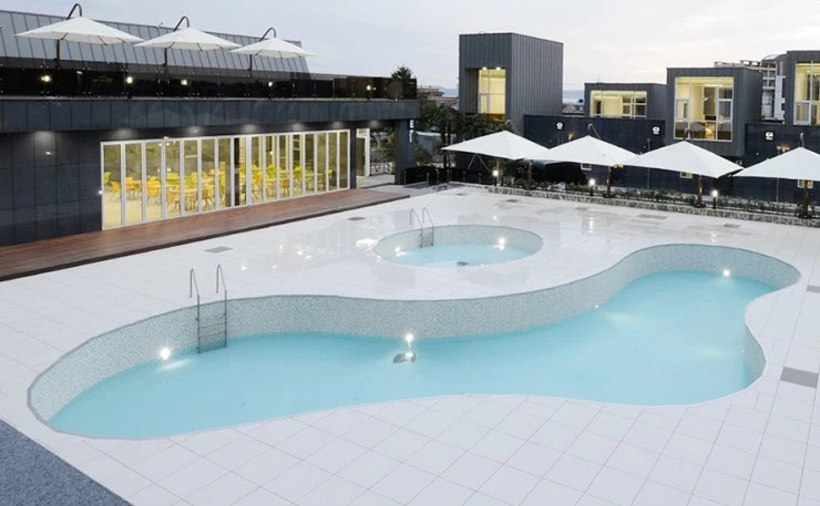 특히 취사가능 레지던스 호텔답게 거실 한쪽 주방에는 식탁부터 주방 가전, 식기류 일체가 준비되어 있다. 그중에서도 에일린, 벨리타는 객실 내에 개별 수영장을 갖추고 있는데, 사계절 내내 온수가 무료로 제공되니 겨울철 물놀이도 가능하다.