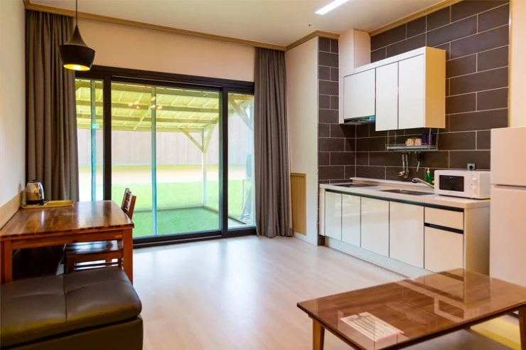 커플로 무주 나봄리조트 찾은 여행자에게 사랑받는 객실이다. 17평형 크기로 침실과 거실, 주방, 욕실로 구성돼 있다. 기본 가전도 빠짐없이 갖췄다. 창밖으로는 덕유산 국립공원의 수려한 경관이 함께한다.