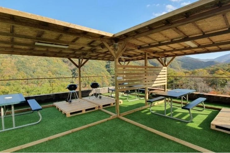 펜션 앞으로 구천동 33경을 따라 흐르는 계곡과 야외 수영장이 준비돼 있다. 객실마다 갖춰진 개별 데크에서는 펜캉스의 꽃인 BBQ 파티를 즐겨보자. 그릴 및 숯 대여 요금은 2~3인 기준 2만 원이다.