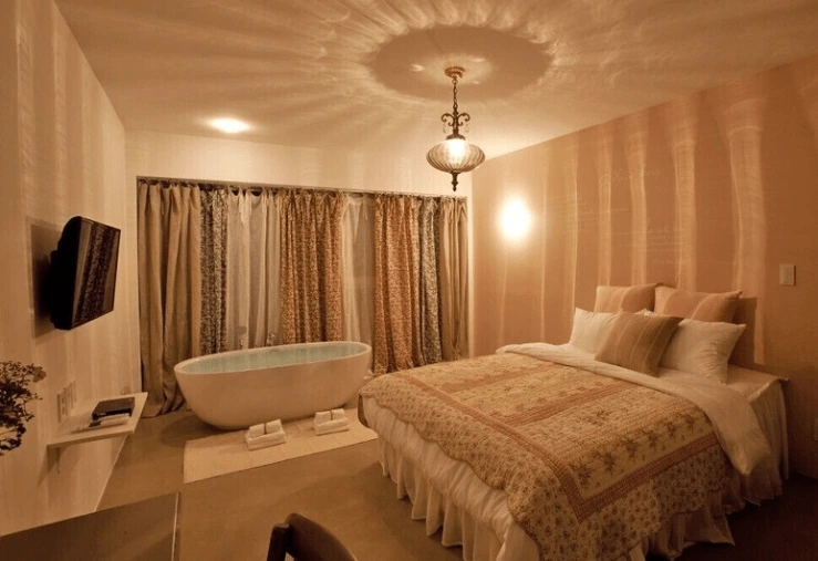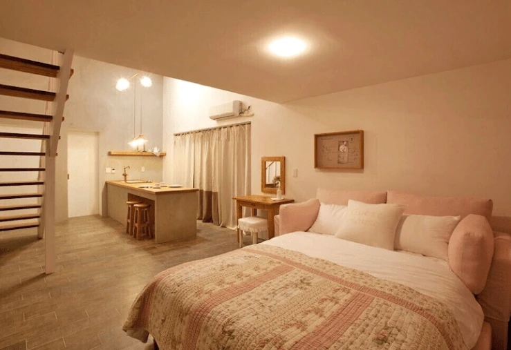 M셋은 커플이나 영유아를 동반한 여행자에게 인기가 높다. 마찬가지로 주방과 테라스를 갖췄다. 더블베드 옆에는 욕조를 설치해 놨다. 로맨틱한 분위기를 내기도 좋고, 아이들 간단한 물놀이용으로 추천한다.
